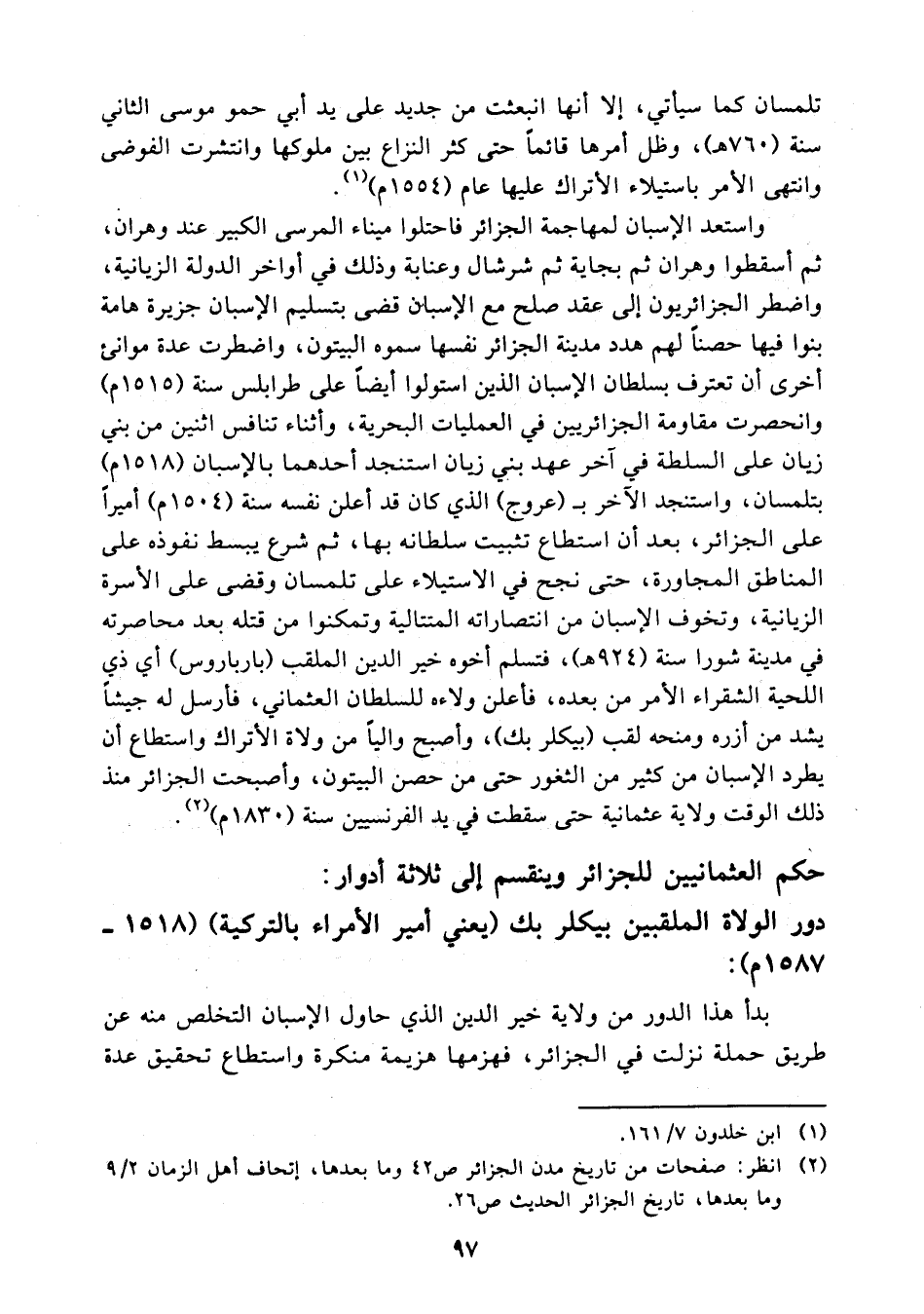 (¬2) انظر: صفحات من تاريخ مدن الجزائر ص: 42 ومابعدها، إتحاف أهل الزمان 2/ 9 ومابعدها، تاريخ الجزائر الحديث ص: 26.
