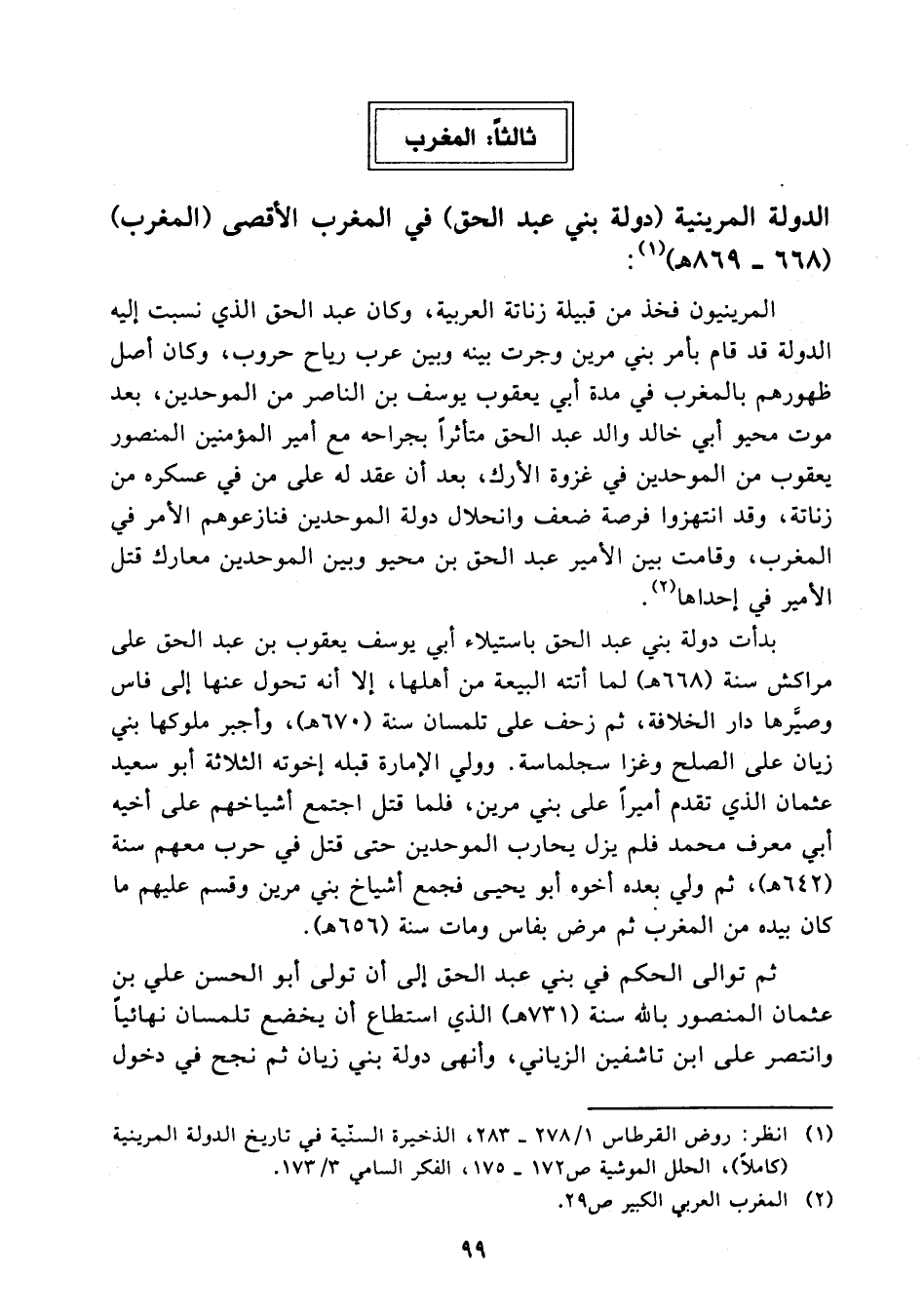 الدولة المرينية (دولة بني عبد الحق) في المغرب الأقصى (المغرب) 668 هـ - 869 هـ (¬1):