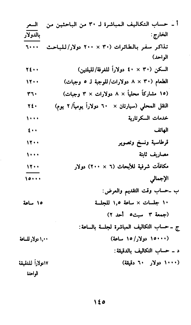 (15 مشاركاً محلياً×8 دولارات× 3 وجبات)