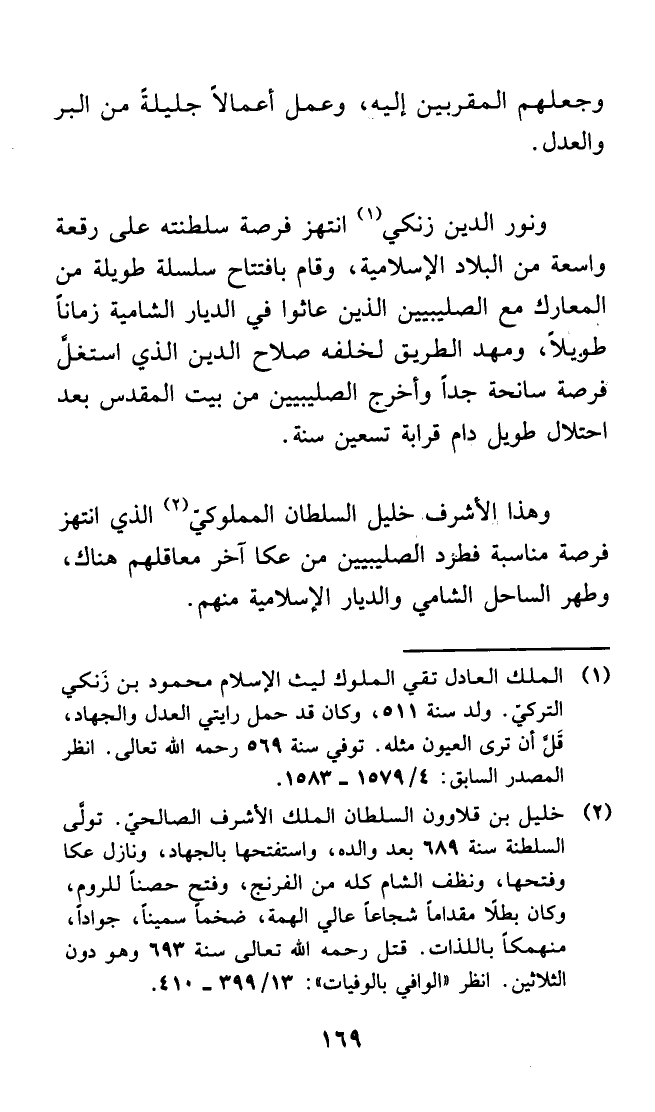 ونور الدين زنكي (¬1) انتهز فرصة سلطنته على رقعة واسعة من البلاد الإسلامية، وقام بافتتاح سلسلة طويلة من المعارك مع الصليبيين الذين عاثوا في الديار الشامية زماناً طويلاً، ومهد الطريق لخلفة صلاح الدين الذي استغلَّ فرصة سانحة جداً وأخرج الصليبيين من بيت المقدس بعد احتلال طويل دام قرابة تسعين سنة.