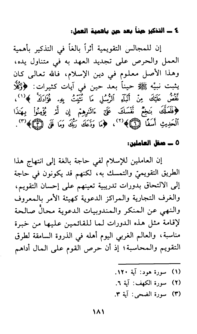 إن العاملين للإسلام لفي حاجة بالغة إلى انتهاج هذا الطريق التقويميّ والتمسك به، لكنهم قد يكونون في حاجة إلى الالتحاق بدورات تدريبية تعينهم على إحسان التقويم، والغرف التجارية والمراكز الدعوية كهيئة الأمر بالمعروف والنهي عن المنكر والمندوبيات الدعوية محالٌّ صالحة لإقامة مثل هذه الدورات لما للقائمين عليها من خبرة مناسبة، والعالم الغربي اليوم أهله في الذروة السامقة لطرق التقويم والمحاسبة؛ إذ أن حرص القوم على المال أداهم