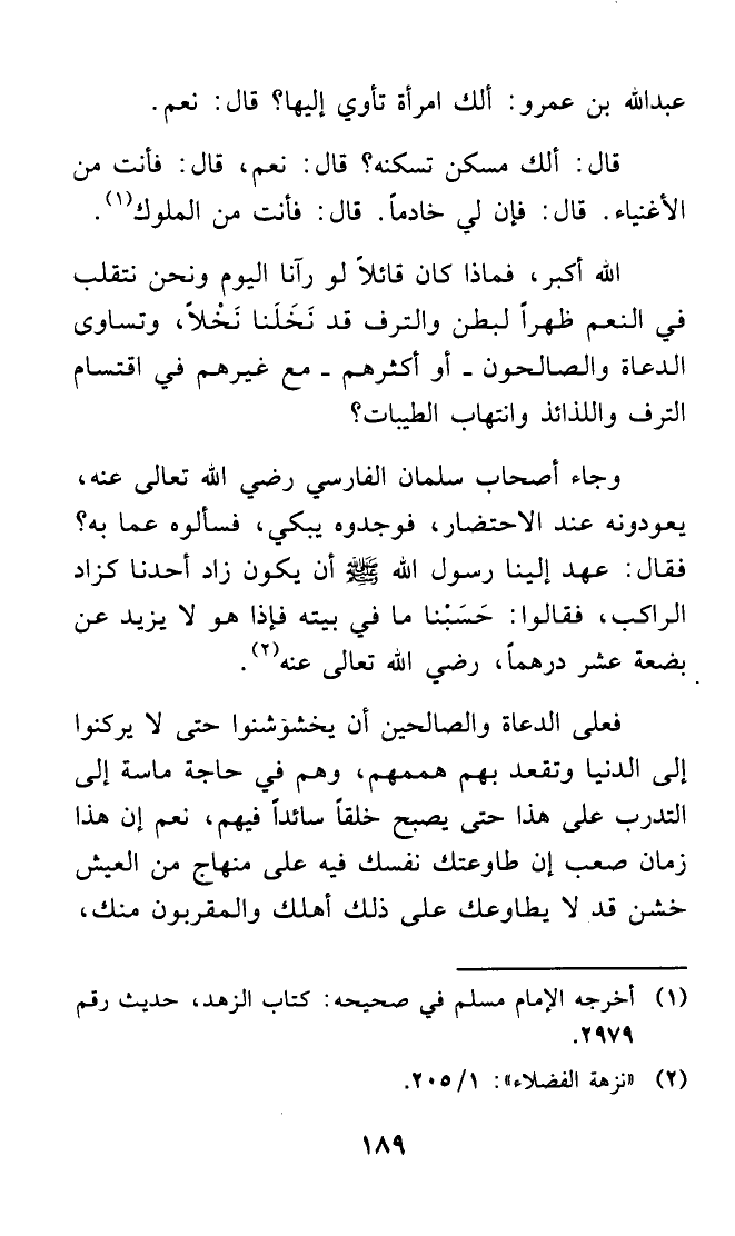 عبد الله بن عمرو: ألك امرأة تأوي إليها؟ قال: نعم.