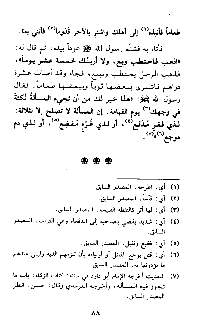 (¬7) الحديث أخرجه الإمام أبو داود في سنته: كتاب الزكاة: باب ما تجوز فيه المسألة، وأخرجه الترمذي وقال: حسن. انظر المصدر السابق.