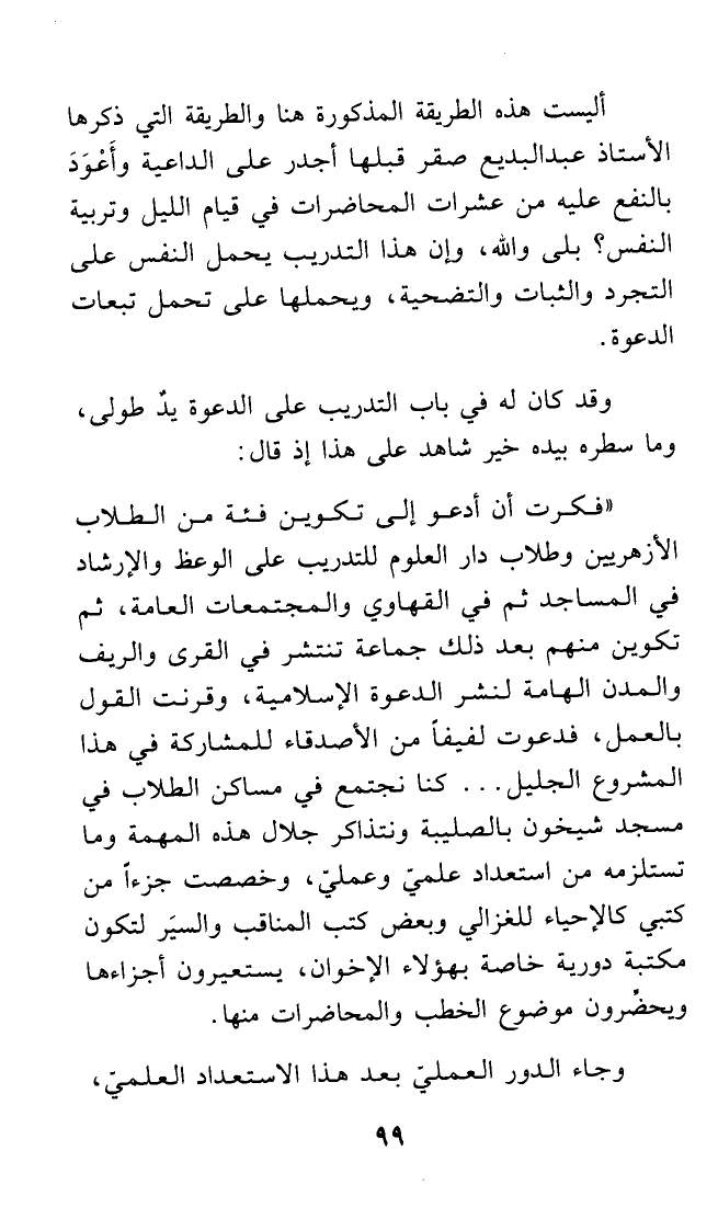 وقد كان له في باب التدريب على الدعوة يدٌ طولى، وما سطره بيده خير شاهد على هذا إذ قال:
