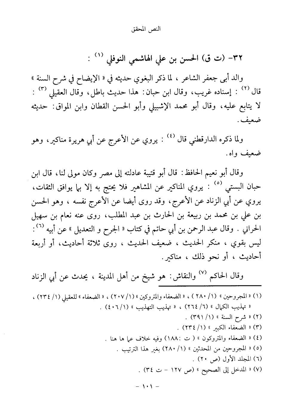 ٣٢ - (ت ق) الحسن بن علي الهاشمي النوفلي (¬١):