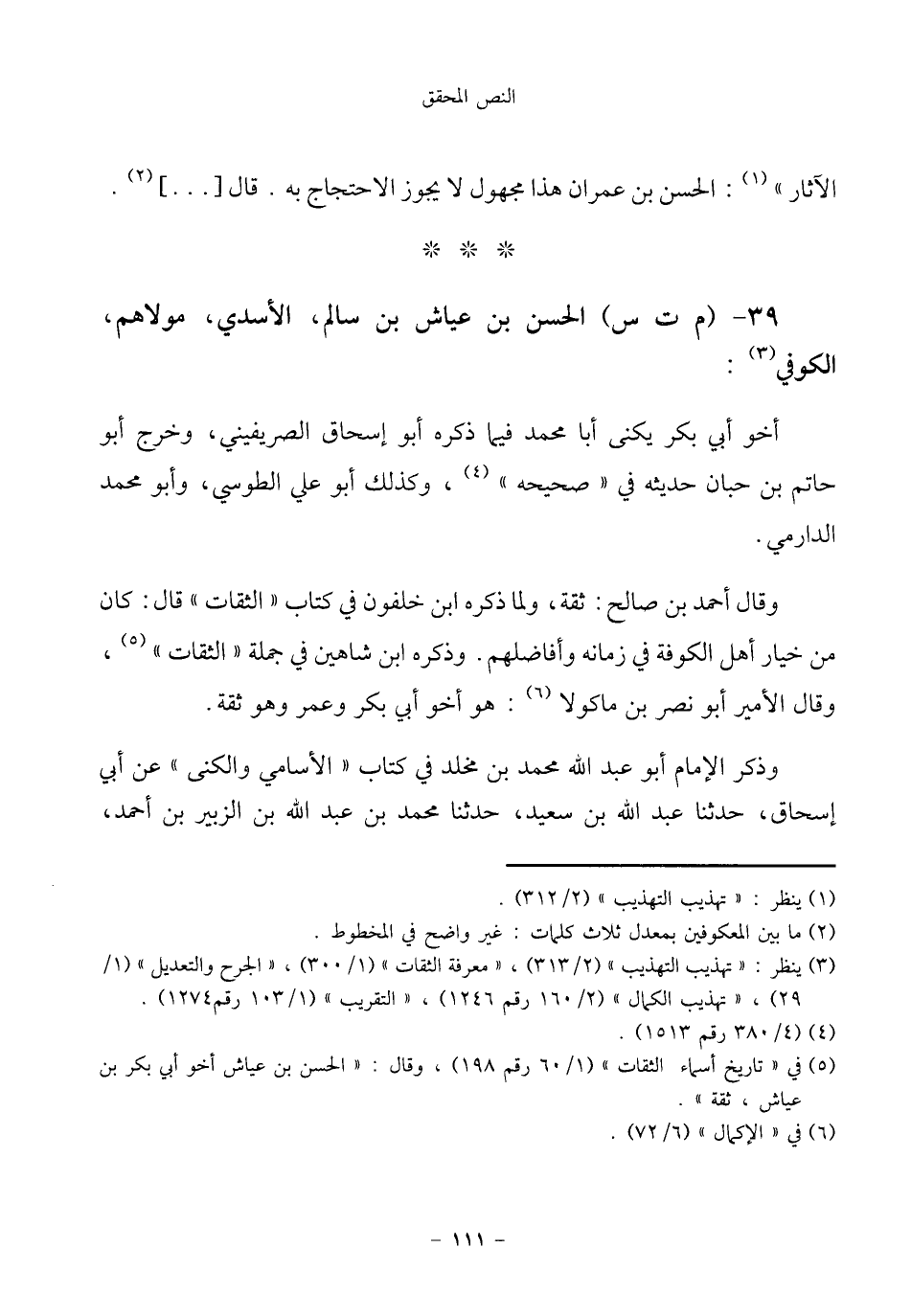 (¬٥) في "تاريخ أسماء الثقات" (١/ ٦٠ رقم ١٩٨)، وقال: "الحسن بن عياش أخو أبي بكر بن عياش، ثقة".