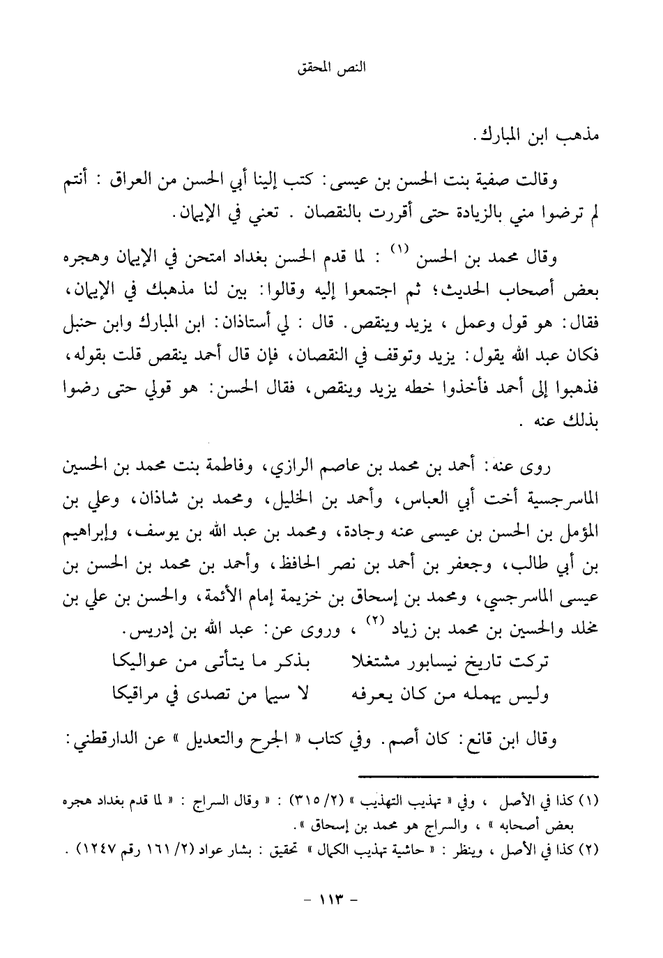 (¬١) كذا في الأصل، وفي "تهذيب التهذيب" (٢/ ٣١٥): "وقال السراج: "لما قدم بغداد هجره بعض أصحابه"، والسراج هو محمد بن إسحاق".