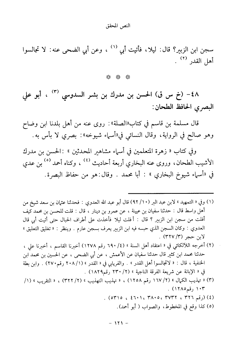 ٤٨ - (خ س ق) الحسن بن مدرك بن بشر السدوسي (¬٣)، أبو علي البصري الحافظ الطحان: