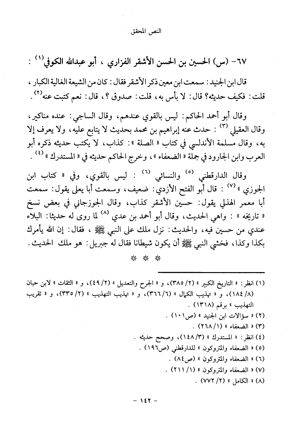 (¬٦) "الضعفاء والمتروكون" (ص ٨٤).