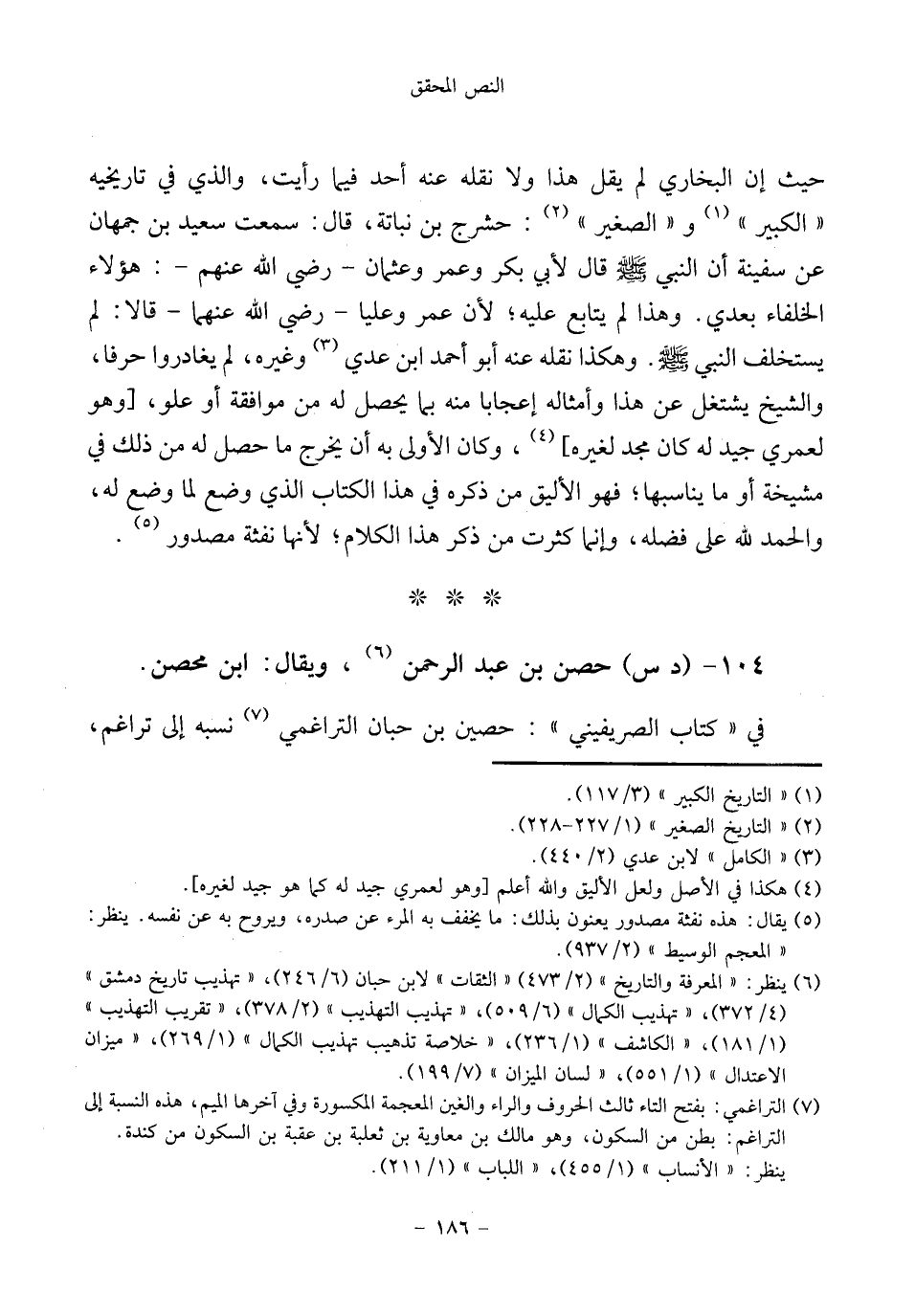 في "كتاب الصريفيني": حصين بن حبان التراغمي (¬٧) نسبه إلى تراغم،