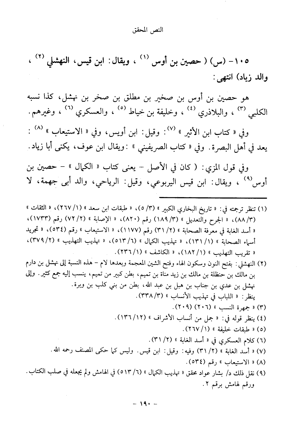 (¬٩) نقل ذلك د/ بشار عواد محقق "تهذيب الكمال" (٦/ ٥١٣) في الهامش ولم يجعله في صلب الكتاب. ورقم لهامش برقم ٢.