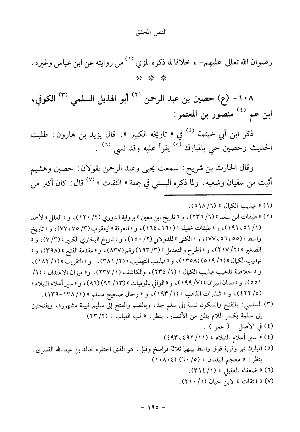 ١٠٨ - (ع) حصين بن عبد الرحمن (¬٢) أبو الهذيل السلمي (¬٣) الكوفي، ابن عم (¬٤) منصور بن المعتمر: