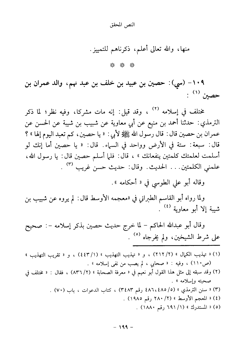 ١٠٩ - (سي): حصين بن عبيد بن خلف بن عبد نهم، والد عمران بن حصين (¬١):