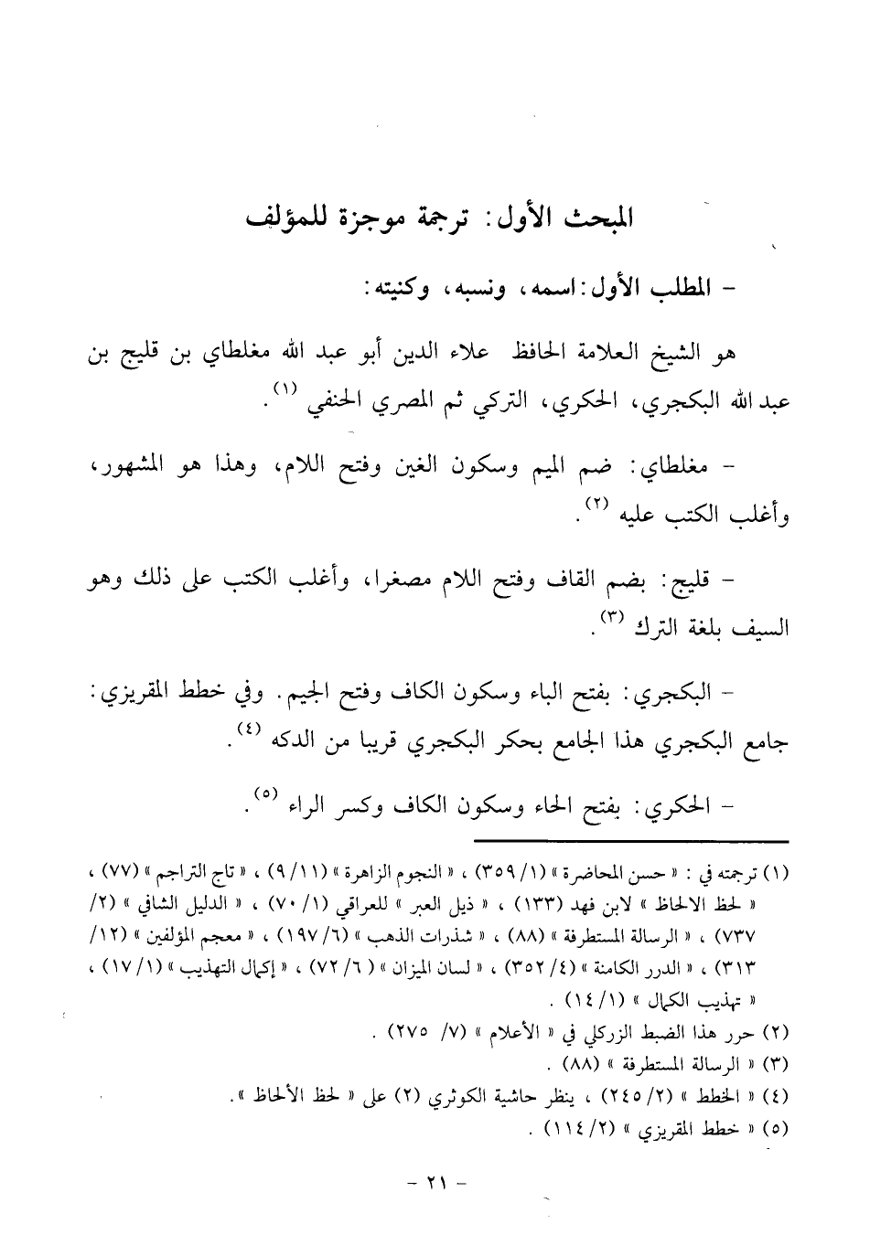 هو الشيخ العلامة الحافظ علاء الدين أبو عبد الله مغلطاي بن قليج بن عبد الله البكجري، الحكري، التركي ثم المصري الحنفي (¬١).