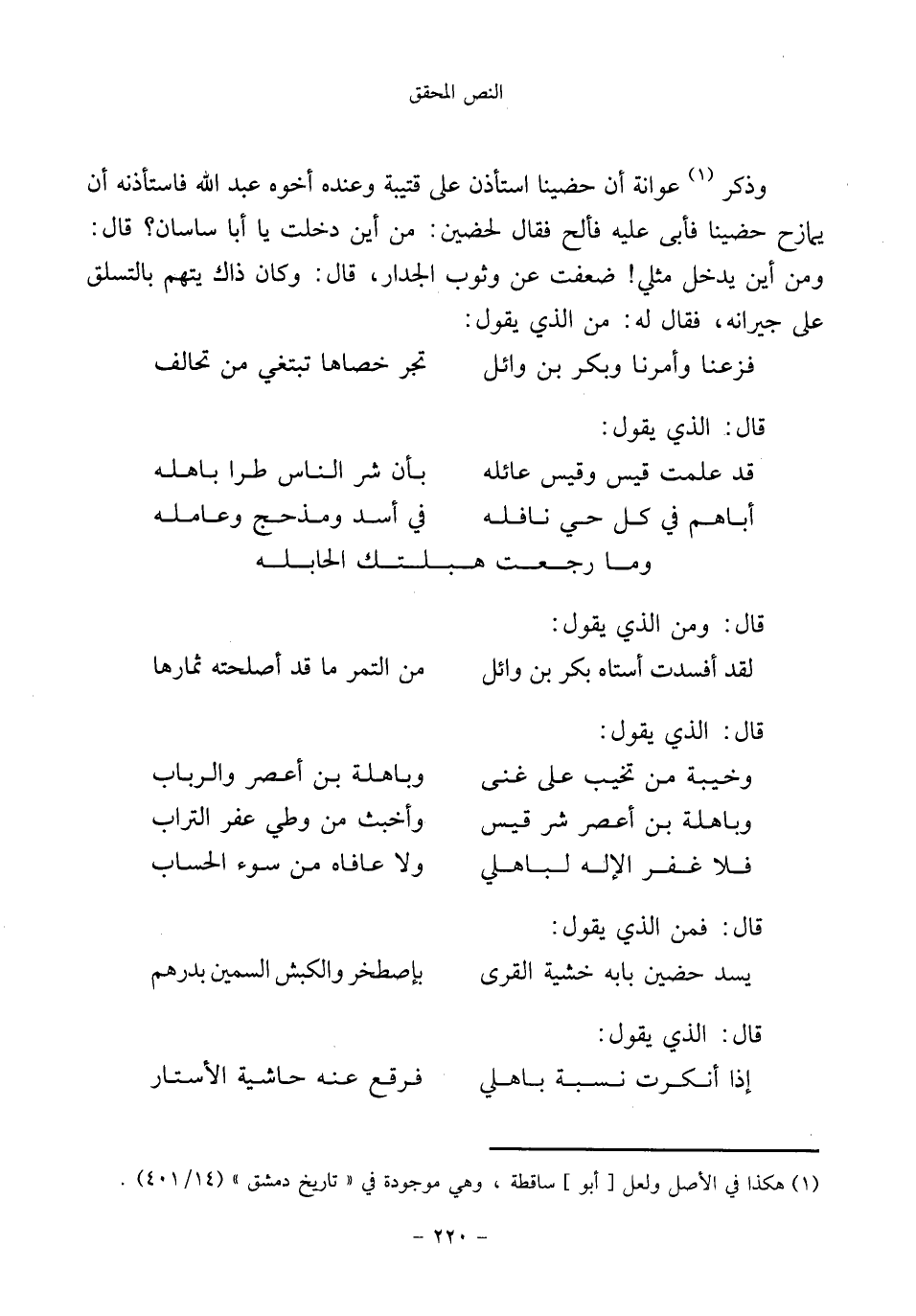 إذا أنكرت نسبة باهلي ... فرقع عنه حاشية الأستار