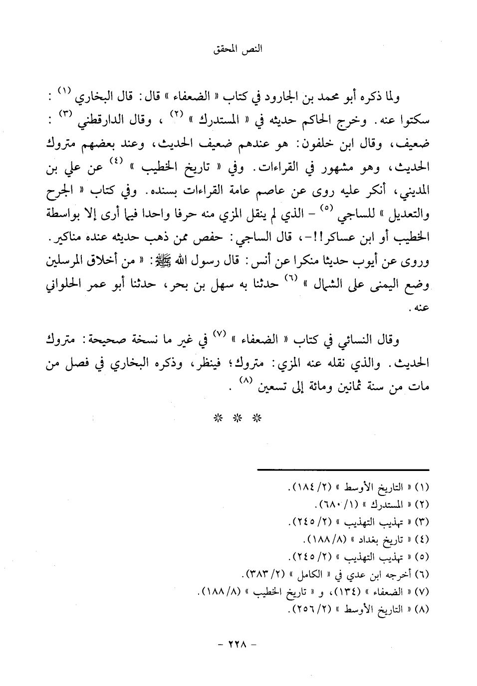 (¬٧) "الضعفاء" (١٣٤)، و"تاريخ الخطيب" (٨/ ١٨٨).