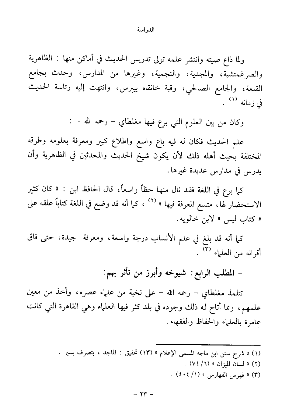 وكان من بين العلوم التي برع فيها مغلطاي -رحمه الله-: