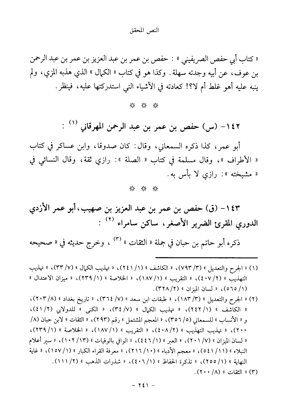 ١٤٣ - (ق) حفص بن عمر بن عبد العزيز بن صهيب، أبو عمر الأزدي الدوري المقرئ الضرير الأصغر، ساكن سامراء (¬٢):