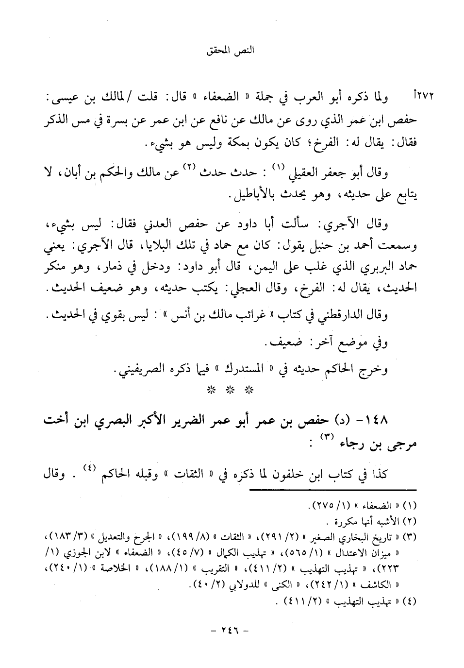 ١٤٨ - (د) حفص بن عمر أبو عمر الضرير الأكبر البصري ابن أخت مرجى بن رجاء (¬٣):