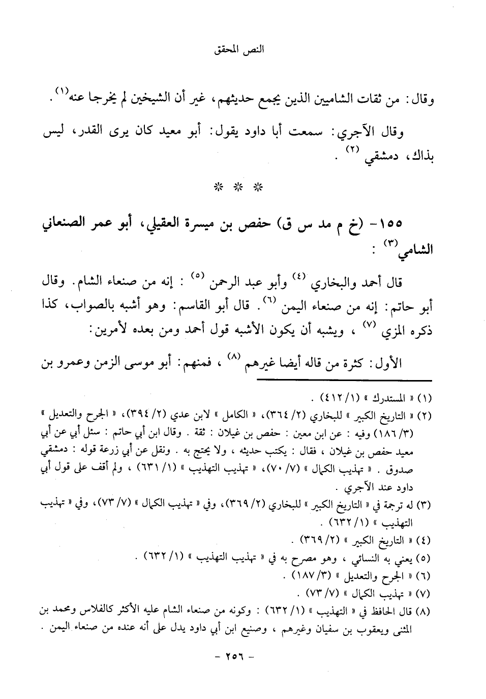 ١٥٥ - (خ م مد س ق) حفص بن ميسرة العقيلي، أبو عمر الصنعاني الشامي (¬٣):