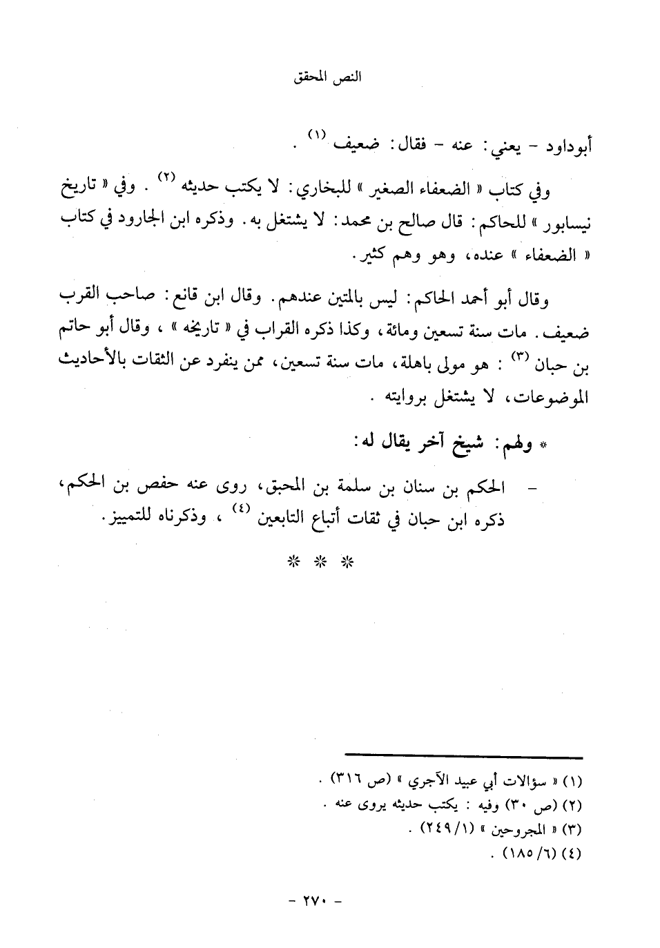 - الحكم بن سنان بن سلمة بن المحبق، روى عنه حفص بن الحكم، ذكره ابن حبان في ثقات أتباع التابعين (¬٤)، وذكرناه للتمييز.