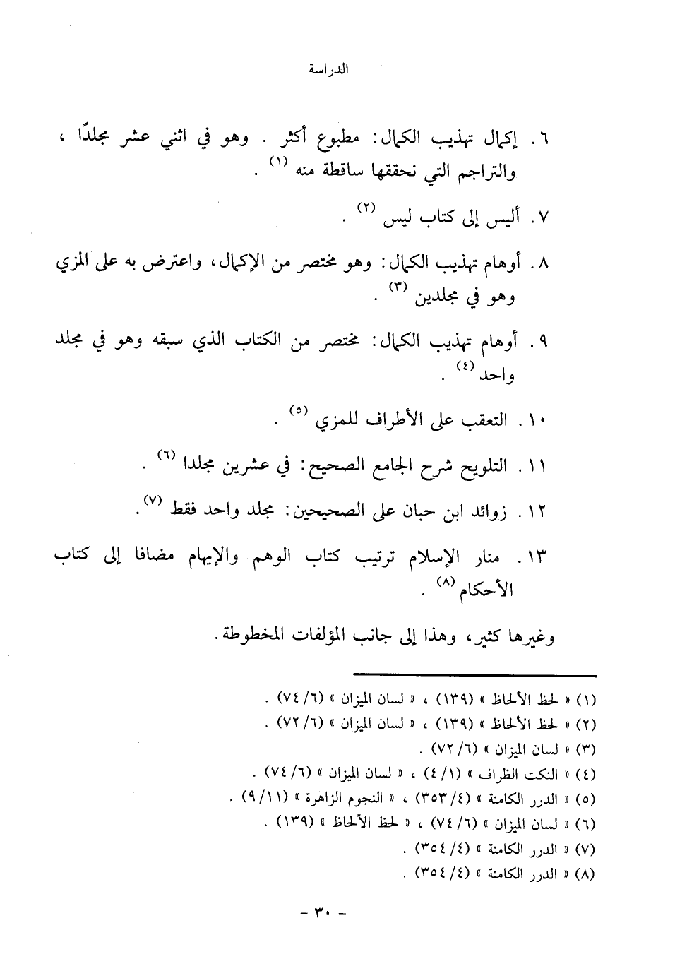 ٦. إكمال تهذيب الكمال: مطبوع أكثر. وهو في اثني عشر مجلدًا، والتراجم التي نحققها ساقطة منه (¬١).