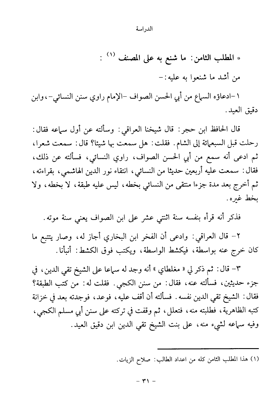 * المطلب الثامن: ما شنع به على المصنف (¬١):