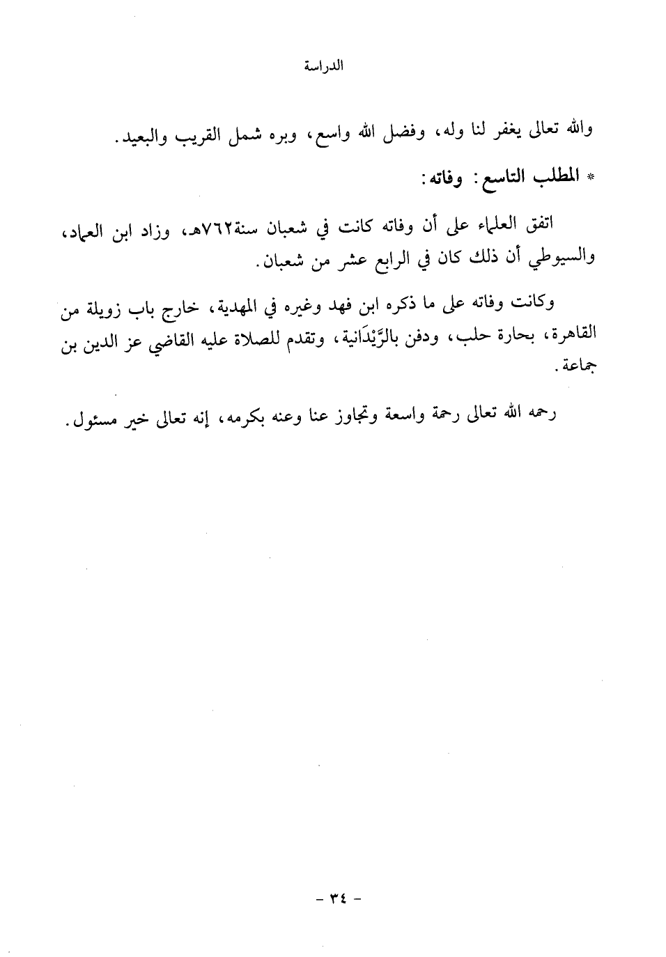 * المطلب التاسع: وفاته: