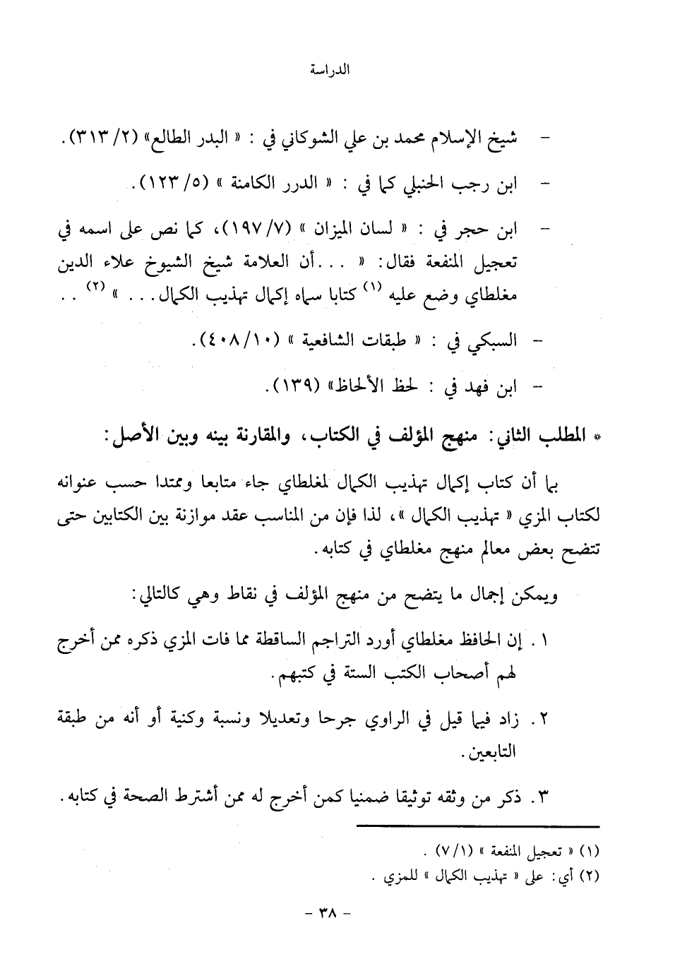 - ابن حجر في: "لسان الميزان" (٧/ ١٩٧)، كما نص على اسمه في تعجيل المنفعة فقال: " ... أن العلامة شيخ الشيوخ علاء الدين مغلطاي وضع عليه (¬١) كتابا سماه إكمال تهذيب الكمال ... " (¬٢) ..