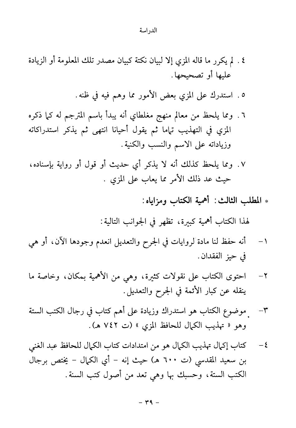٦. ومما يلحظ من معالم منهج مغلطاي أنه يبدأ باسم المترجم له كما ذكره المزي في التهذيب تماما ثم يقول أحيانا انتهى ثم يذكر استدراكاته وزياداته على الاسم والنسب والكنية.