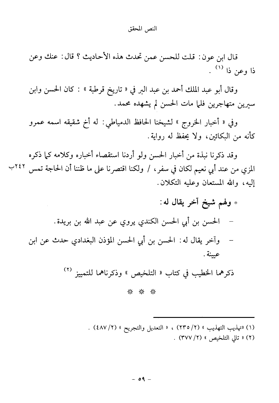 - وآخر يقال له: الحسن بن أبي الحسن المؤذن البغدادي حدث عن ابن عيينة.
