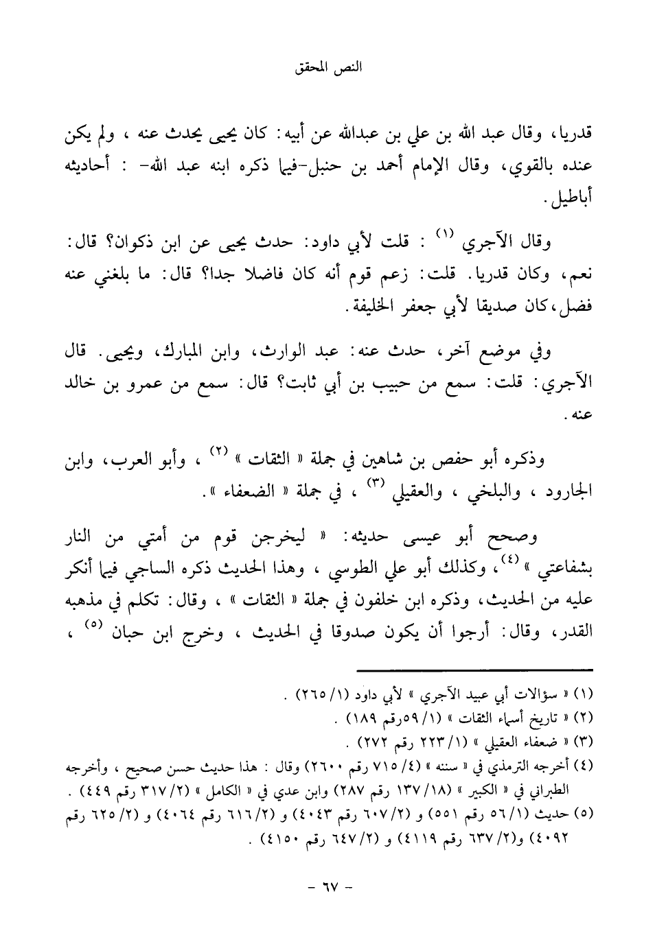 (¬٥) حديث (١/ ٥٦ رقم ٥٥١) و (٢/ ٦٠٧ رقم ٤٠٤٣) و (٢/ ٦١٦ رقم ٤٠٦٤) و (٢/ ٦٢٥ رقم ٤٠٩٢) و (٢/ ٦٣٧ رقم ٤١١٩) و (٢/ ٦٤٧ رقم ٤١٥٠).