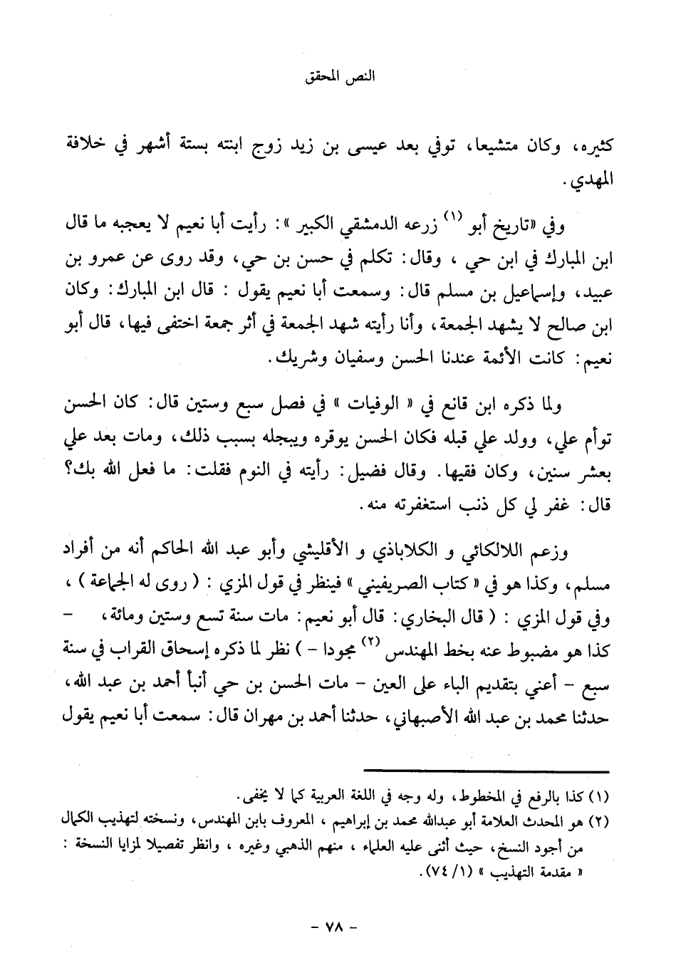 (¬٢) هو المحدث العلامة أبو عبد الله محمد بن إبراهيم، المعروف بابن المهندس، ونسخته لتهذيب الكمال من أجود النسخ، حيث أثنى عليه العلماء، منهم الذهبي وغيره، وانظر تفصيلا لمزايا النسخة: "مقدمة التهذيب" (١/ ٧٤).