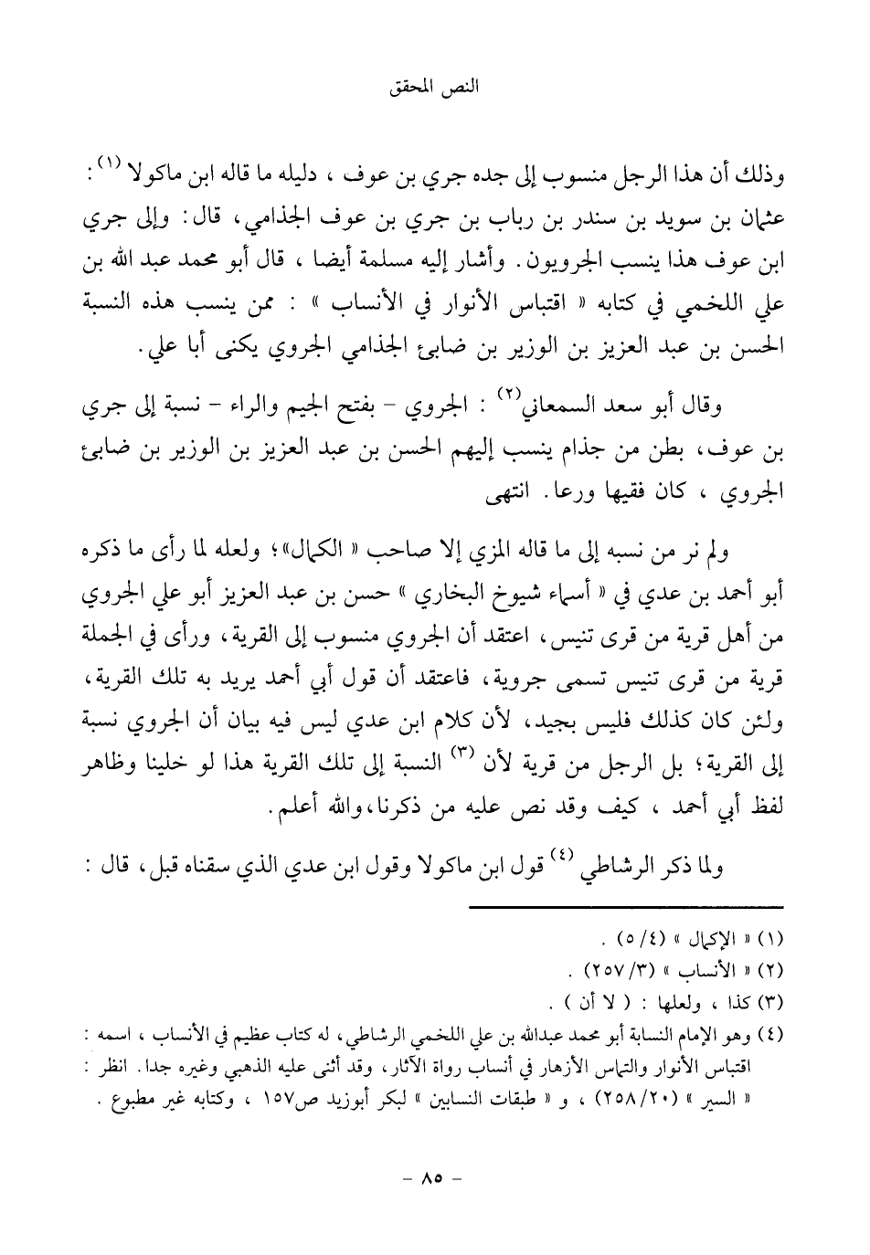 (¬٤) وهو الإمام النسابة أبو محمد عبد الله بن علي اللخمي الرشاطي، له كتاب عظيم في الأنساب، اسمه: اقتباس الأنوار والتماس الأزهار في أنساب رواة الآثار، وقد أثنى عليه الذهبي وغيره جدا. انظر: "السير" (٢٠/ ٢٥٨)، و"طبقات النسابين" لبكر أبو زيد ص ١٥٧، وكتابه غير مطبوع.