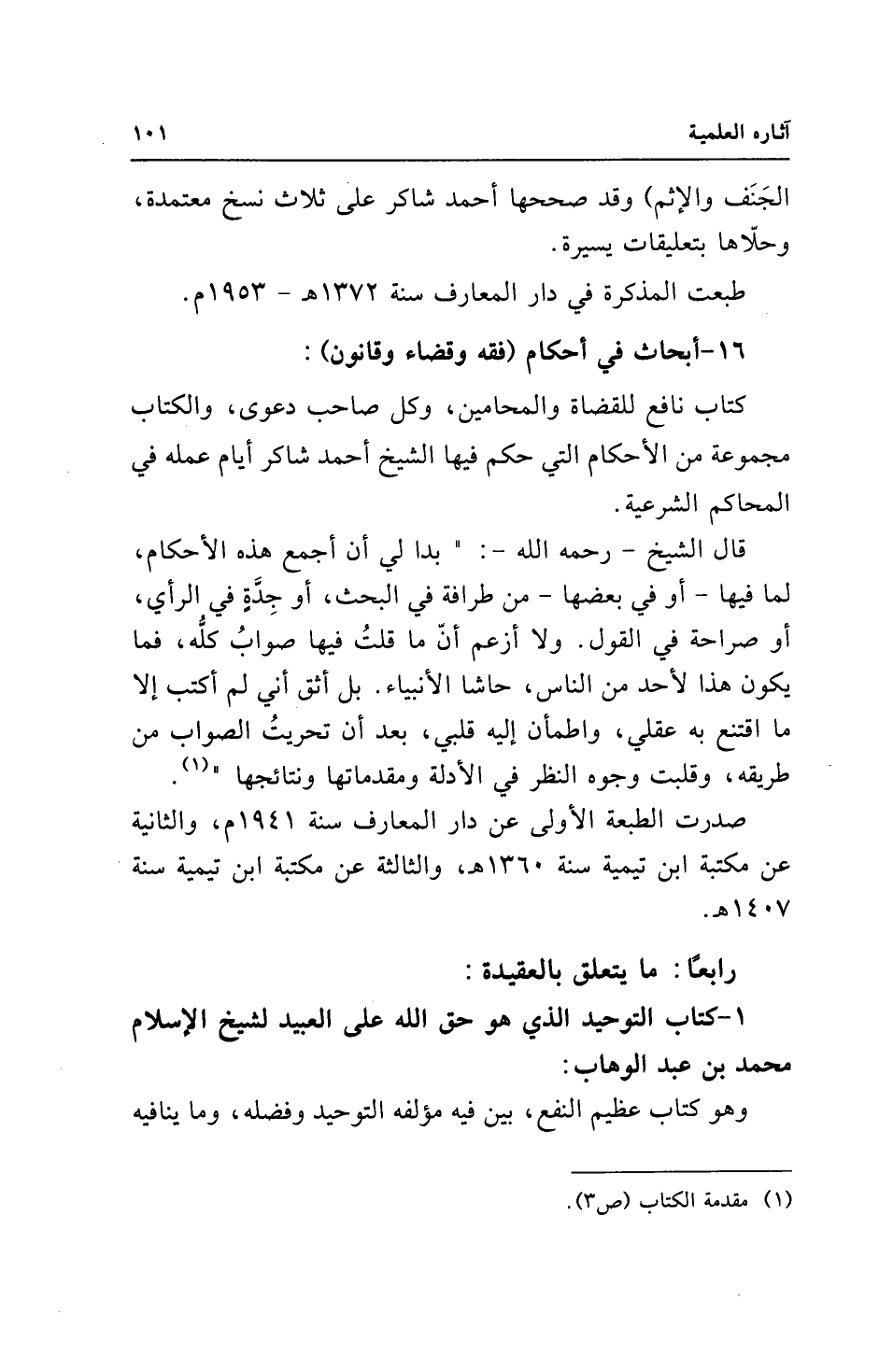 كتاب نافع للقضاة والمحامين، وكل صاحب دعوى، والكتاب مجموعة من الأحكام التي حكم فيها الشيخ أحمد شاكر أيام عمله في المحاكم الشرعية.