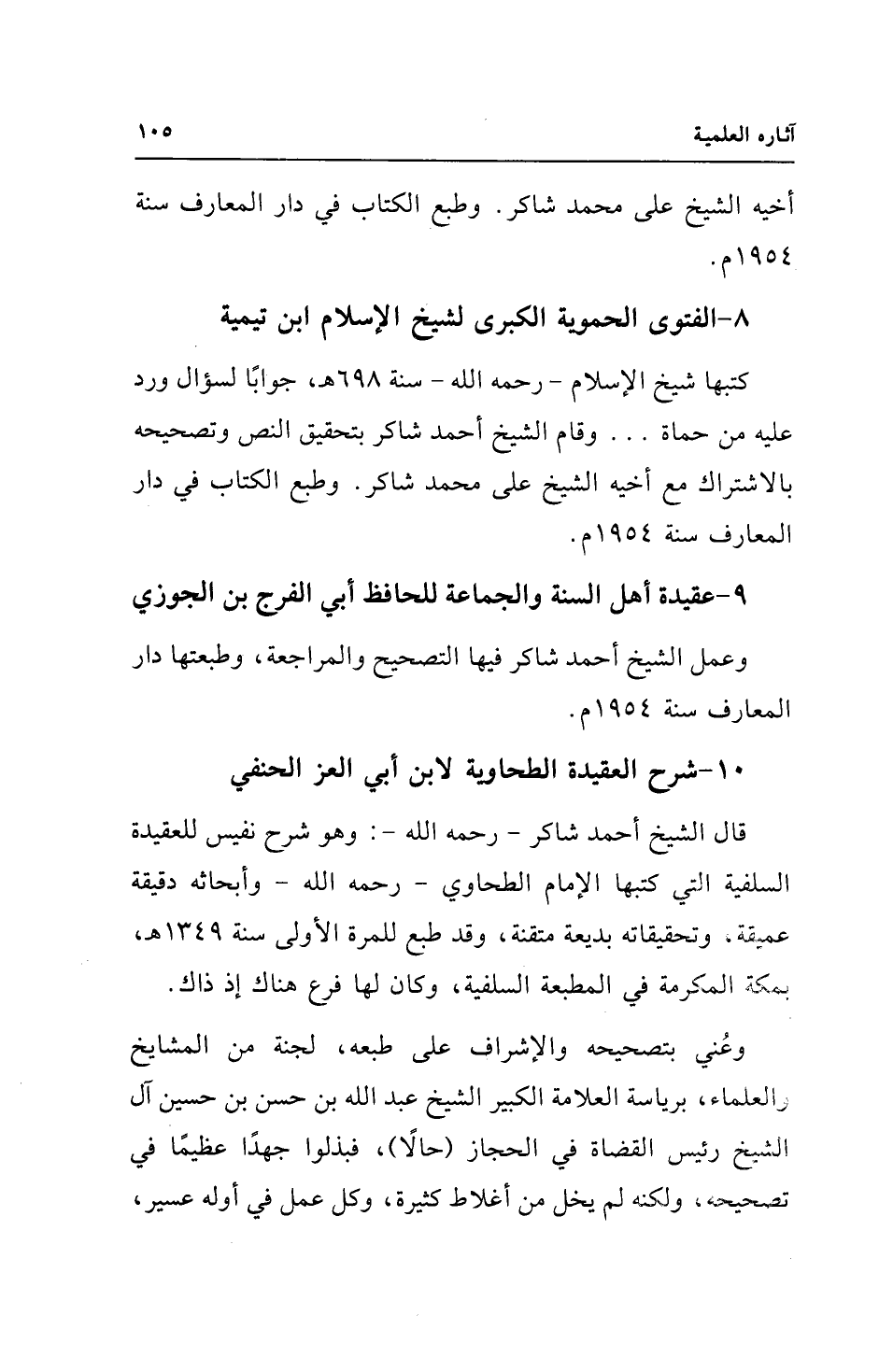 وعمل الشيخ أحمد شاكر فيها التصحيح والمراجعة، وطبعتها دار المعارف سنة 1954 م.