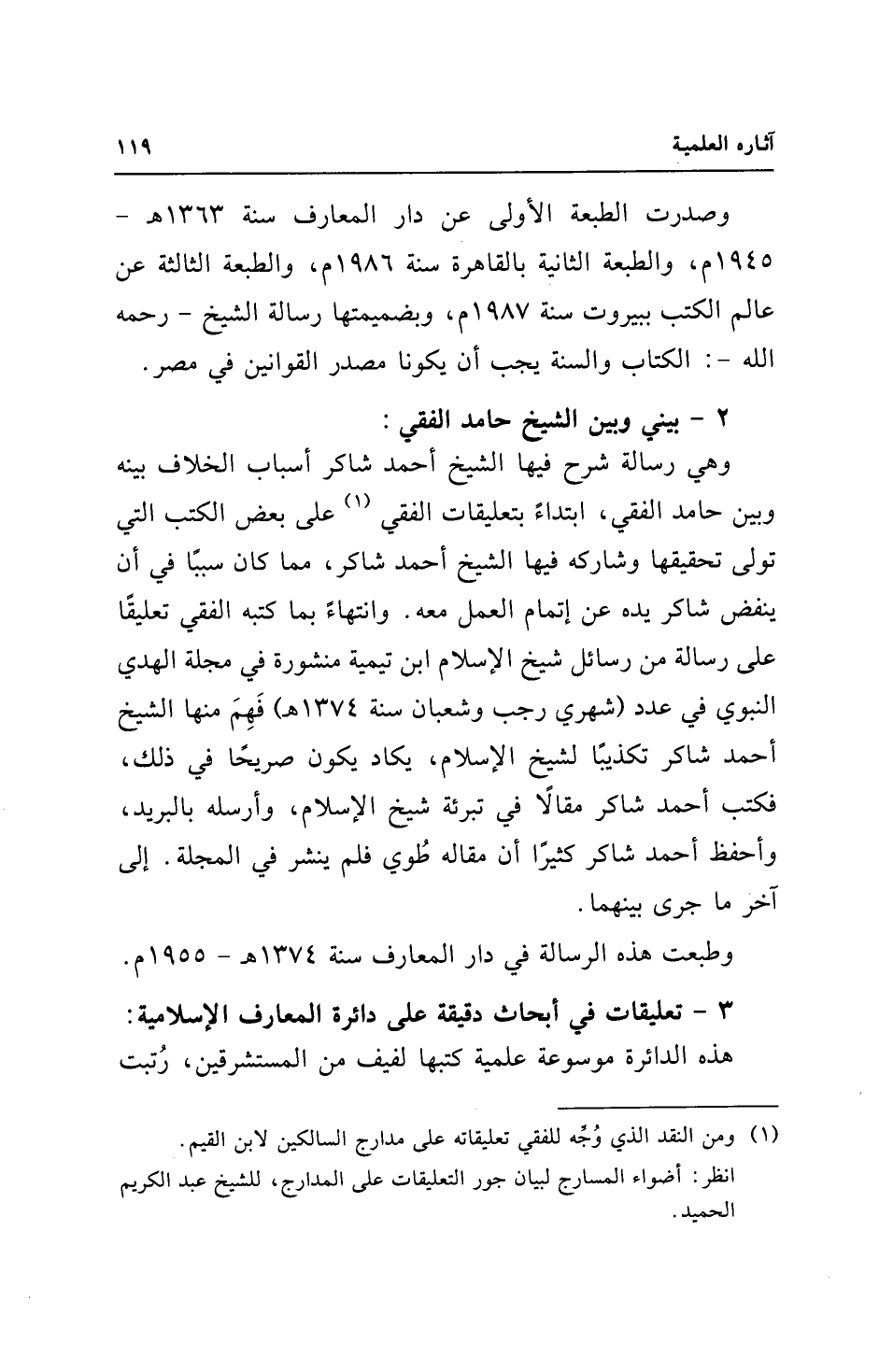 (¬1) ومن النقد الذي وُجِّه للفقي تعليقاته على مدارج السالكين لابن القيم.