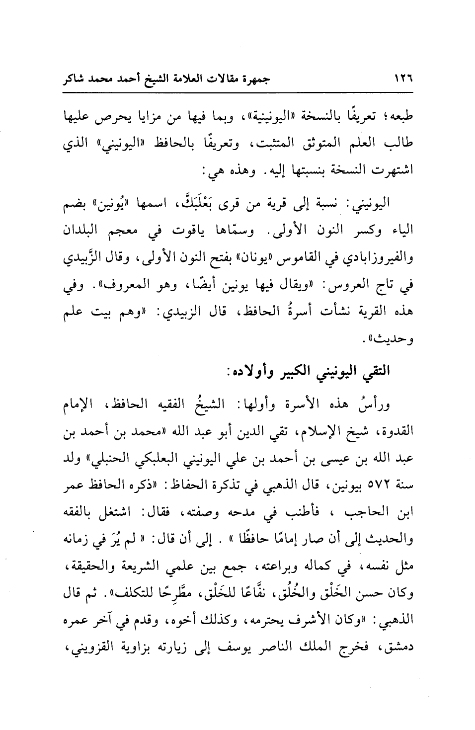 طبعه؛ تعريفًا بالنسخة "اليونينية"، وبما فيها من مزايا يحرص عليها طالب العلم المتوثق المتثبت، وتعريفًا بالحافظ "اليونيني" الذي اشتهرت النسخة بنسبتها إليه. وهذه هي: