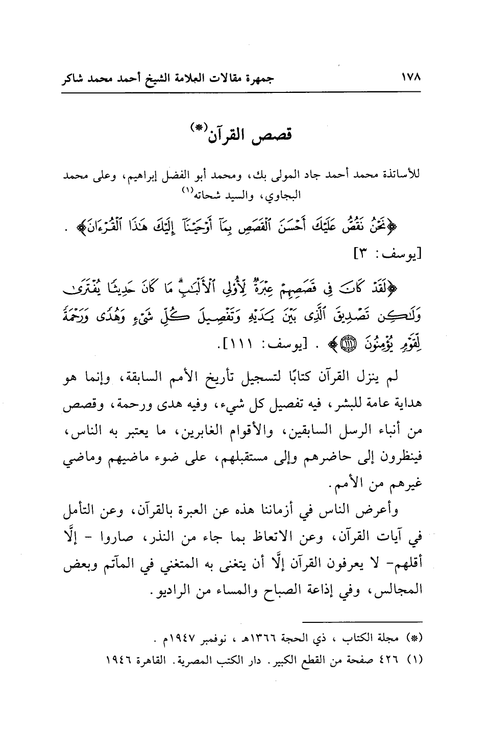 للأساتذة محمد أحمد جاد المولى بك، ومحمد أبو الفضل إبراهيم، وعلى محمد البجاوي، والسيد شحاته (¬1)