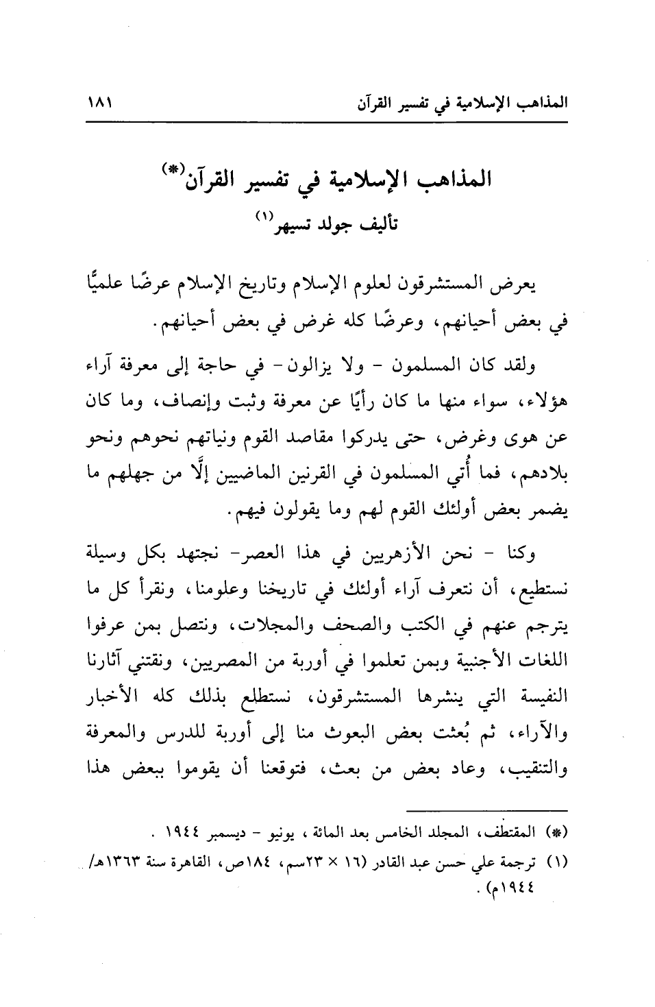 (¬1) ترجمة علي حسن عبد القادر (16 × 23 سم، 184 ص، القاهرة سنة 1363 هـ/ 1944 م).