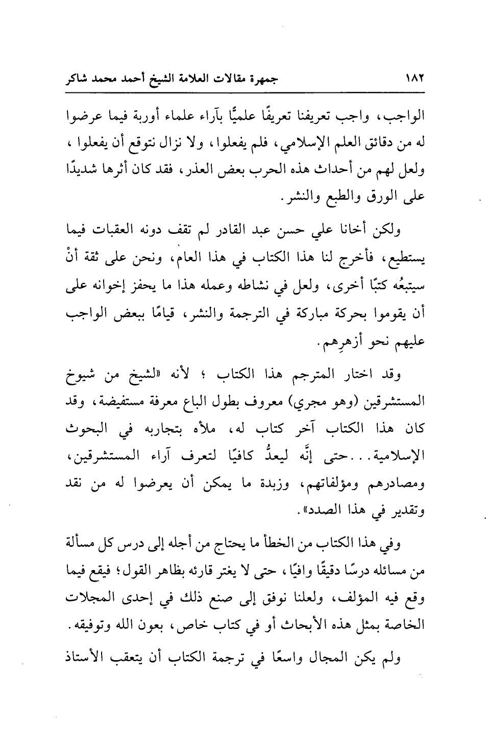 ولكن أخانا علي حسن عبد القادر لم تقف دونه العقبات فيما يستطيع، فأخرج لنا هذا الكتاب في هذا العام، ونحن على ثقة أنْ سيتبعُه كتبًا أخرى، ولعل في نشاطه وعمله هذا ما يحفز إخوانه على أن يقوموا بحركة مباركة في الترجمة والنشر، قيامًا ببعض الواجب عليهم نحو أزهرِهم.