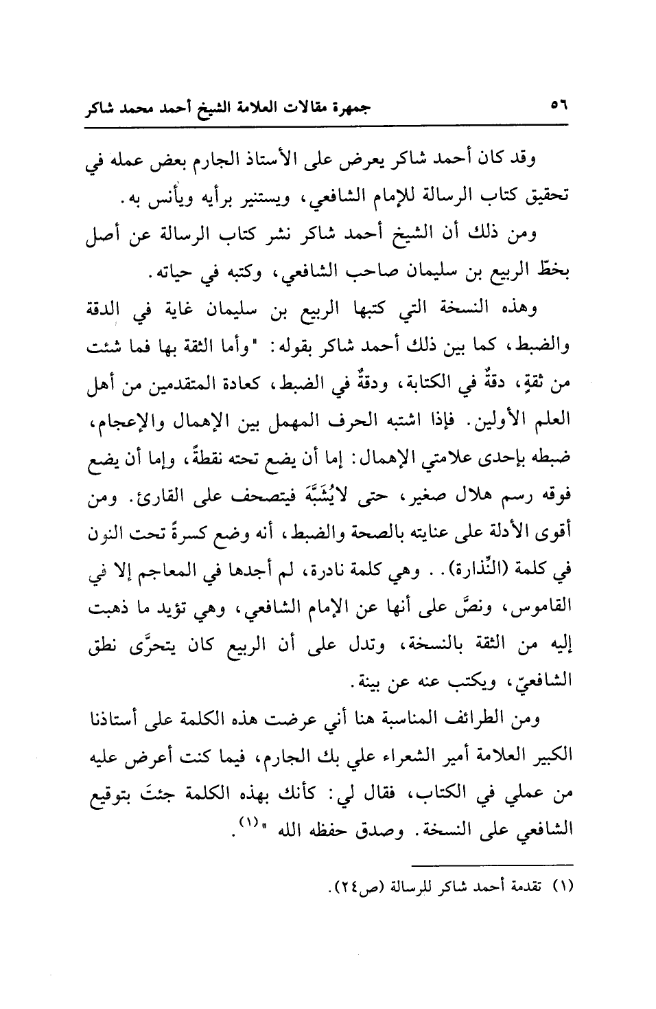 (¬1) تقدمة أحمد شاكر للرسالة (ص 24).