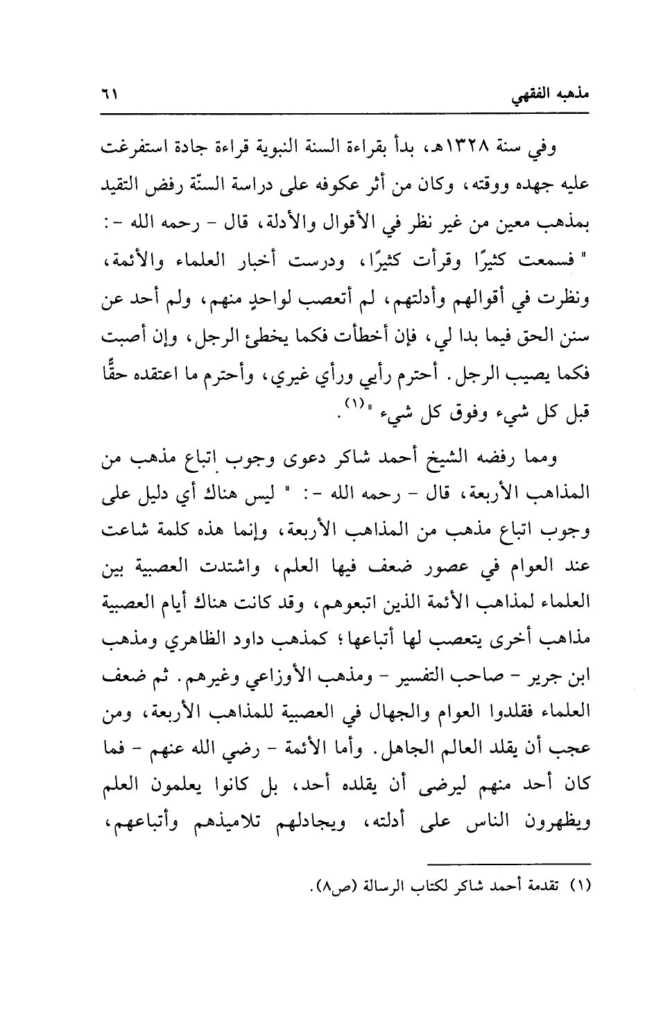 (¬1) تقدمة أحمد شاكر لكتاب الرسالة (ص 8).