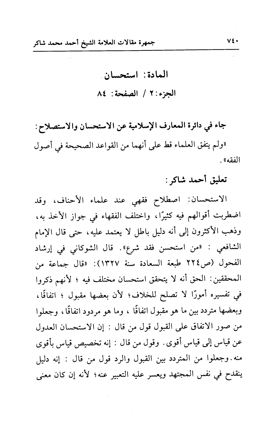 جاء في دائرة المعارف الإسلامية عن الاستحسان والاستصلاح: