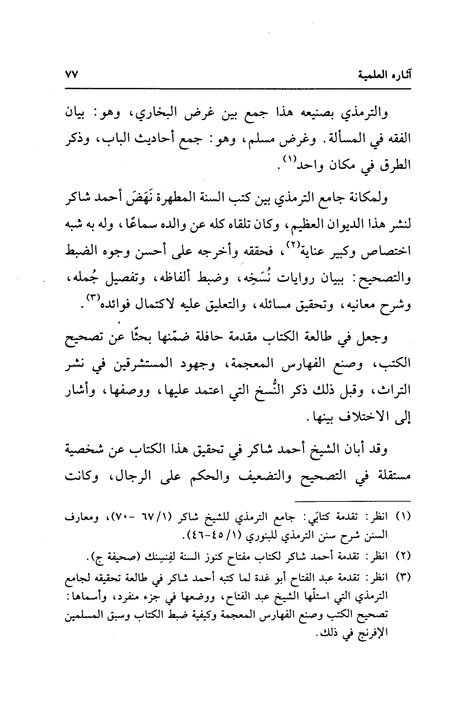 (¬3) انظر: تقدمة عبد الفتاح أبو غدة لما كتبه أحمد شاكر في طالعة تحقيقه لجامع الترمذي التي استلّها الشيخ عبد الفتاح، ووضعها في جزء منفرد، وأسماها: تصحيح الكتب وصنع الفهارس المعجمة وكيفية ضبط الكتاب وسبق المسلمين الإفرنج في ذلك.