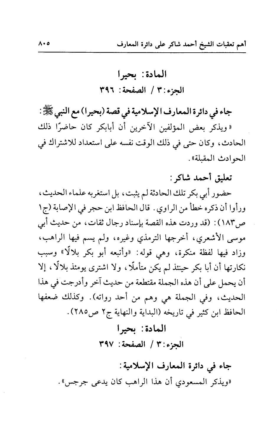 جاء في دائرة المعارف الإسلامية في قصة (بحيرا) مع النبي - صلى الله عليه وسلم -: