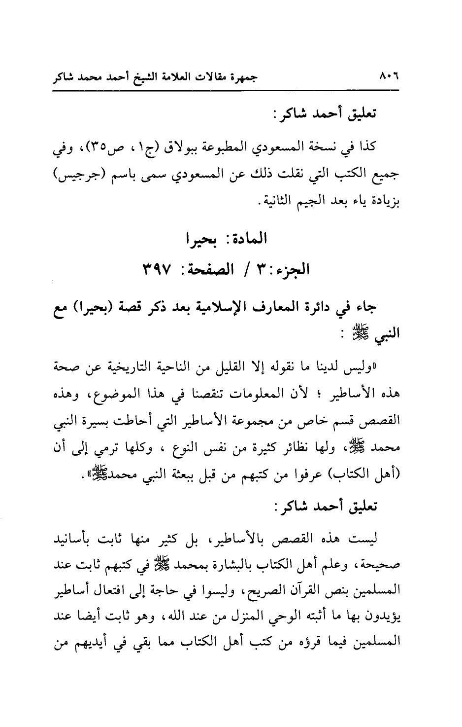 جاء في دائرة المعارف الإسلامية بعد ذكر قصة (بحيرا) مع النبي - صلى الله عليه وسلم -: