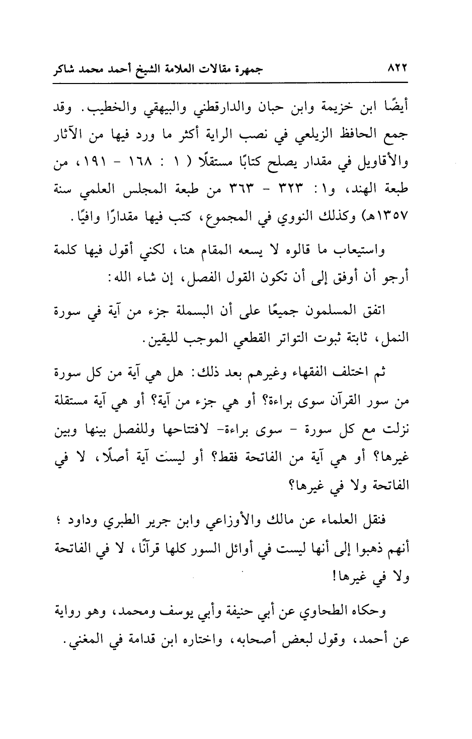 أيضًا ابن خزيمة وابن حبان والدارقطني والبيهقي والخطيب. وقد جمع الحافظ الزيلعي في نصب الراية أكثر ما ورد فيها من الآثار والأقاويل في مقدار يصلح كتابًا مستقلًا (1: 168 - 191، من طبعة الهند، و 1: 323 - 363 من طبعة المجلس العلمي سنة 1357 هـ) وكذلك النووي في المجموع، كتب فيها مقدارًا وافيًا.