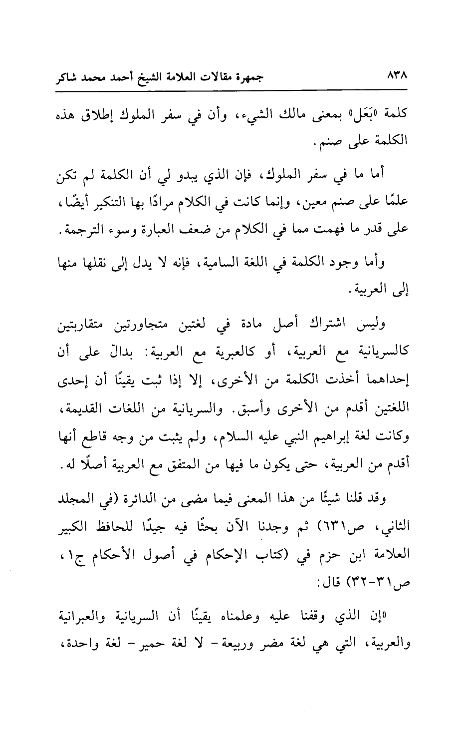 "إن الذي وقفنا عليه وعلمناه يقينًا أن السريانية والعبرانية والعربية، التي هي لغة مضر وربيعة - لا لغة حمير - لغة واحدة،