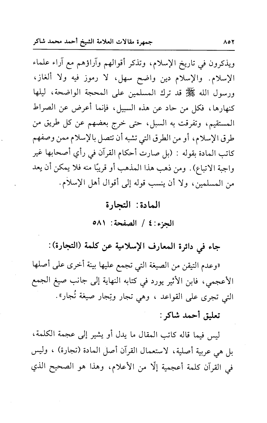 تعليق أحمد شاكر: